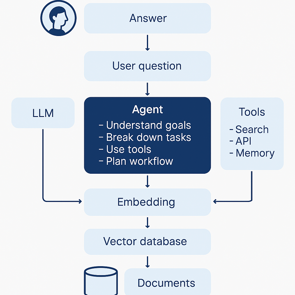 - Tool usage: Search, summarize, write, calculate, call APIs