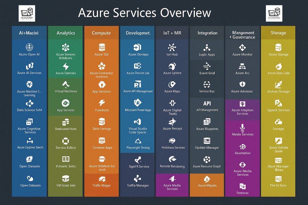 This updated Azure Services Overview acts as your navigation chart through the complex but powerful Azure ecosystem. Whether you’re building AI-powered apps, deploying microservices, or securing hybrid networks, this map helps you know what to use and when.