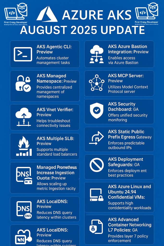Microsoft just dropped a massive set of Azure Kubernetes Service (AKS) updates for August 2025, and honestly, this release feels like they went on a feature spree. Some updates are General Availability (GA)—ready for production right now—while others are in Preview so we can kick the tires before they’re finalized.
