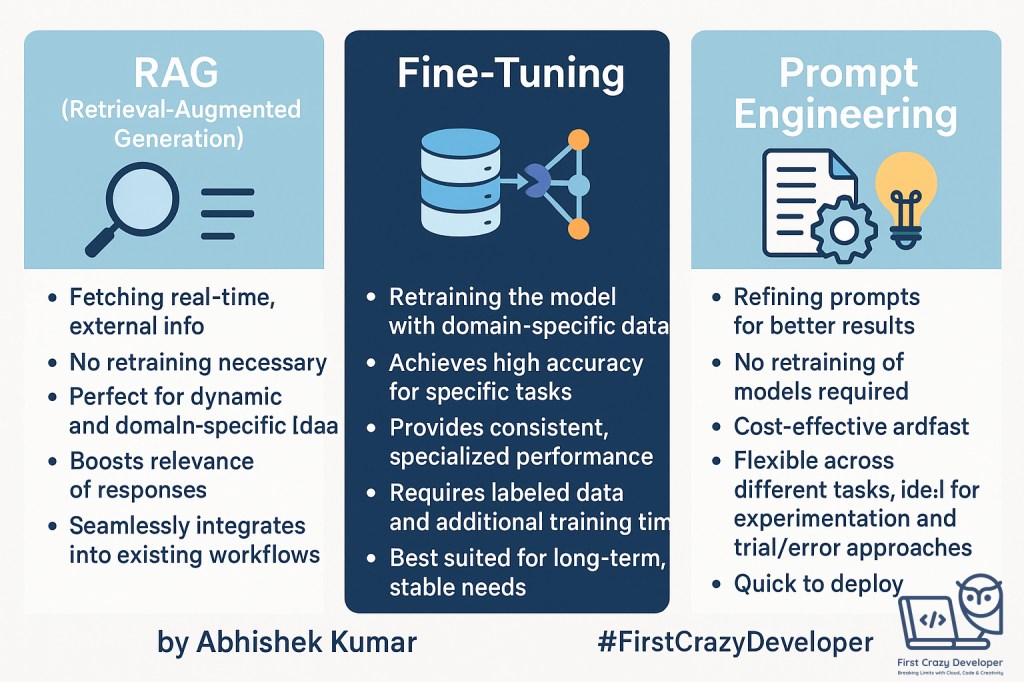 #AI #ArtificialIntelligence #MachineLearning #GenerativeAI #PromptEngineering #FineTuning #RAG #DataScience #TechBlog #FirstCrazyDeveloper #ByAbhishekKumar