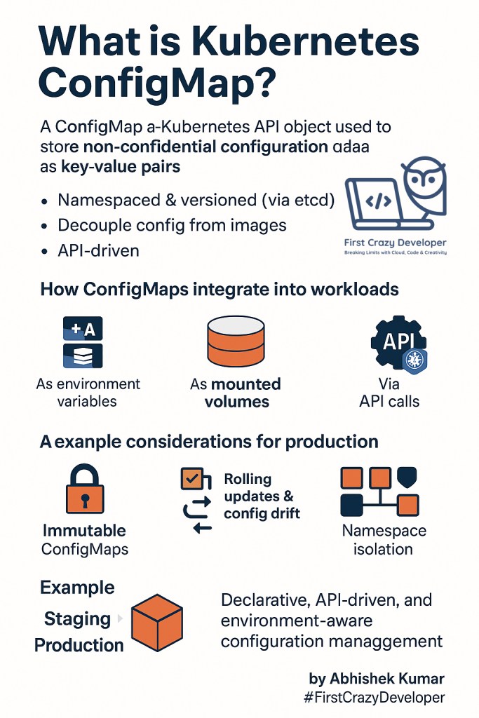 Kubernetes ConfigMaps are more than just simple key-value stores. They are declarative, API-driven, and environment-aware tools for managing configuration lifecycles in a Kubernetes cluster.