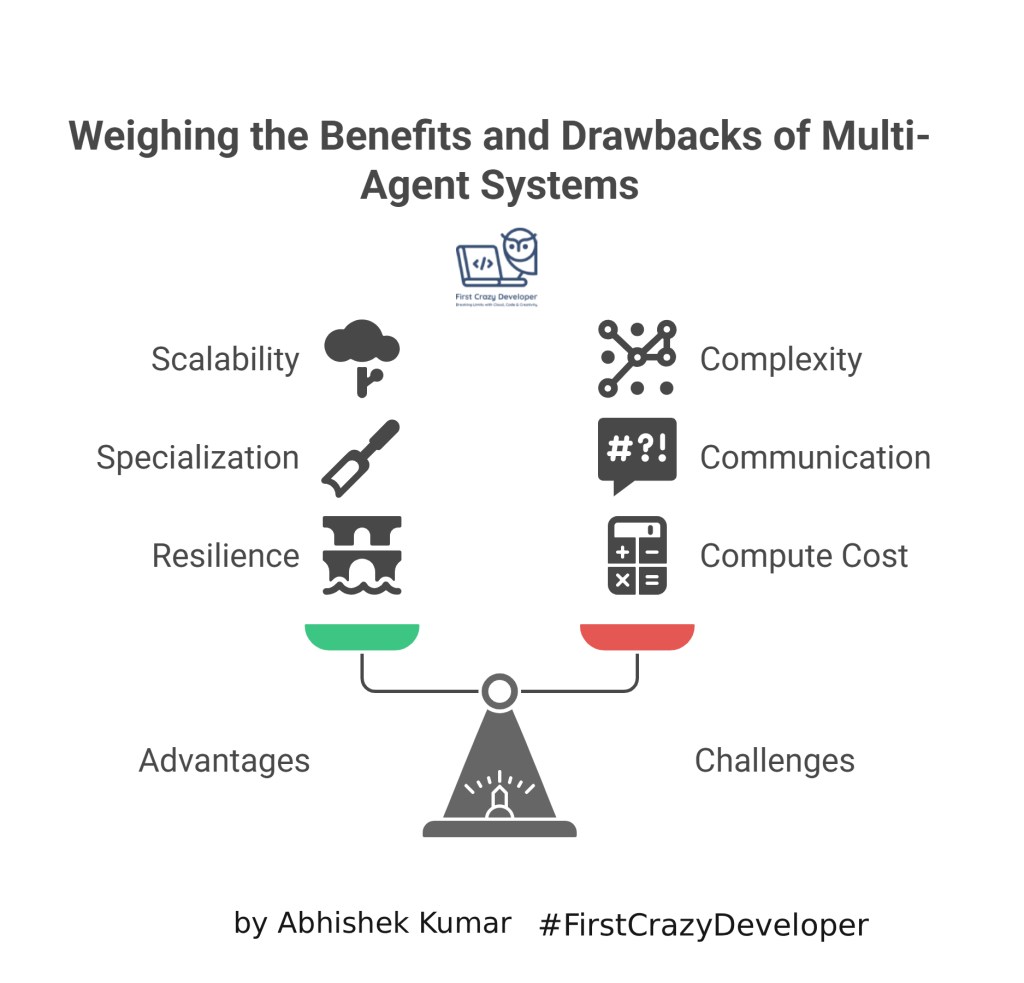 - Infrastructure Cost: Running multiple agents consumes more resources.