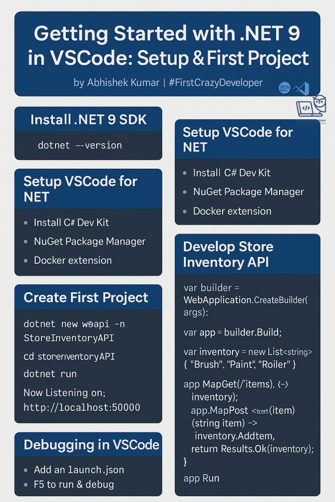 This guide provides a step-by-step walkthrough of setting up .NET 9 development in Visual Studio Code (VSCode), using a real-world API project example. It emphasizes the benefits of using VSCode for modern, cloud-native .NET development, particularly for enterprises adopting Docker and DevOps pipelines. The guide covers installation of the .NET 9 SDK, essential VSCode extensions, project creation, API development, and debugging techniques.