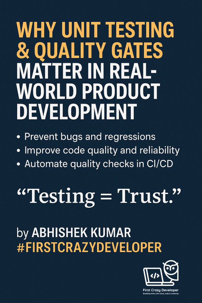 In modern product development — whether you’re building a .NET API, an Azure Function, or a containerized microservice — Unit Testing and Quality Gates aren’t just good practices — they are your armor against chaos.