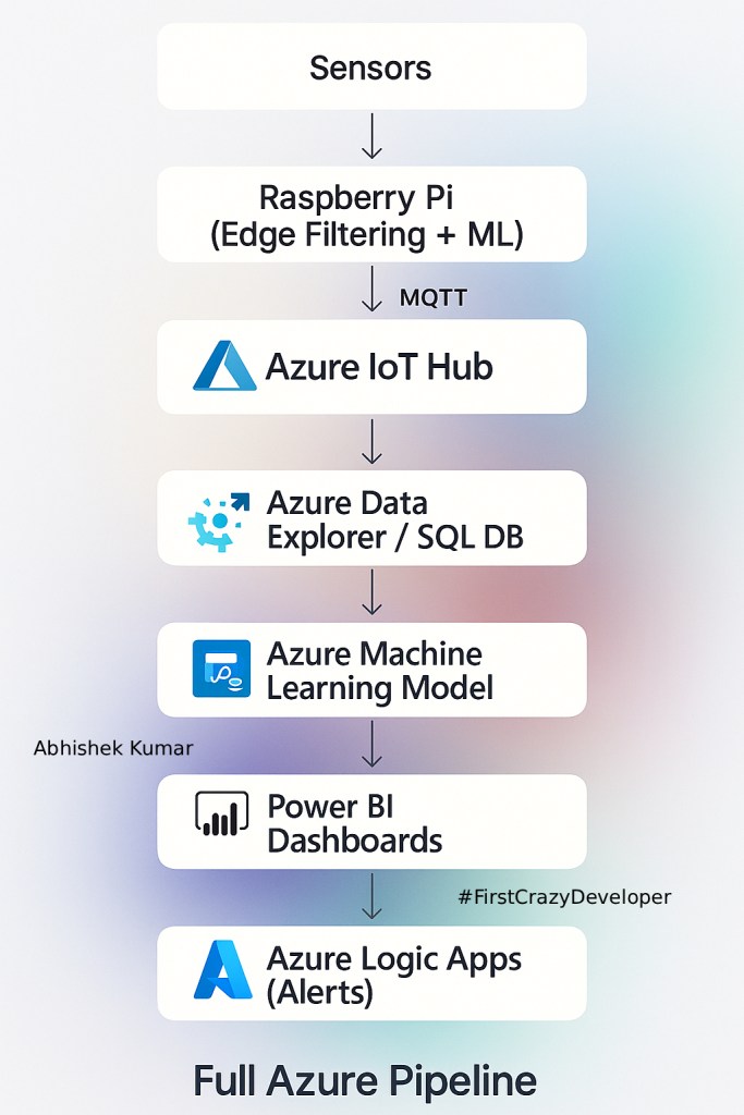 ⚙️ Real IoT Architecture: Sensor → Edge → Cloud → AI → Action