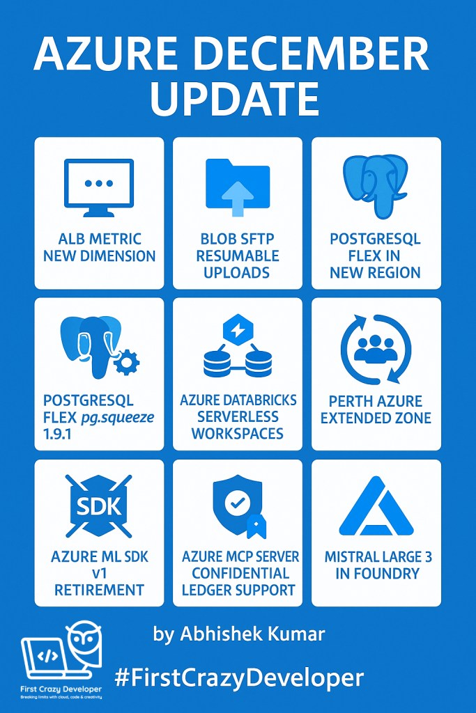 #Azure #MicrosoftAzure #CloudComputing #AzureUpdate #DevOps #CloudArchitecture #AI #AzureAI #Databricks #PostgreSQL #SFTP #BlobStorage #CloudSecurity #MCP #ConfidentialLedger #CloudInnovation #AzureCommunity #FirstCrazyDeveloper #AbhishekKumar